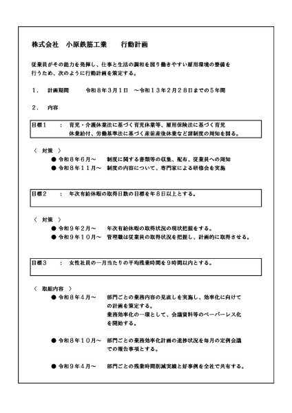 株式会社小原鉄筋工業は女性活躍推進法に基づく一般事業主行動計画に取り組んでいます。