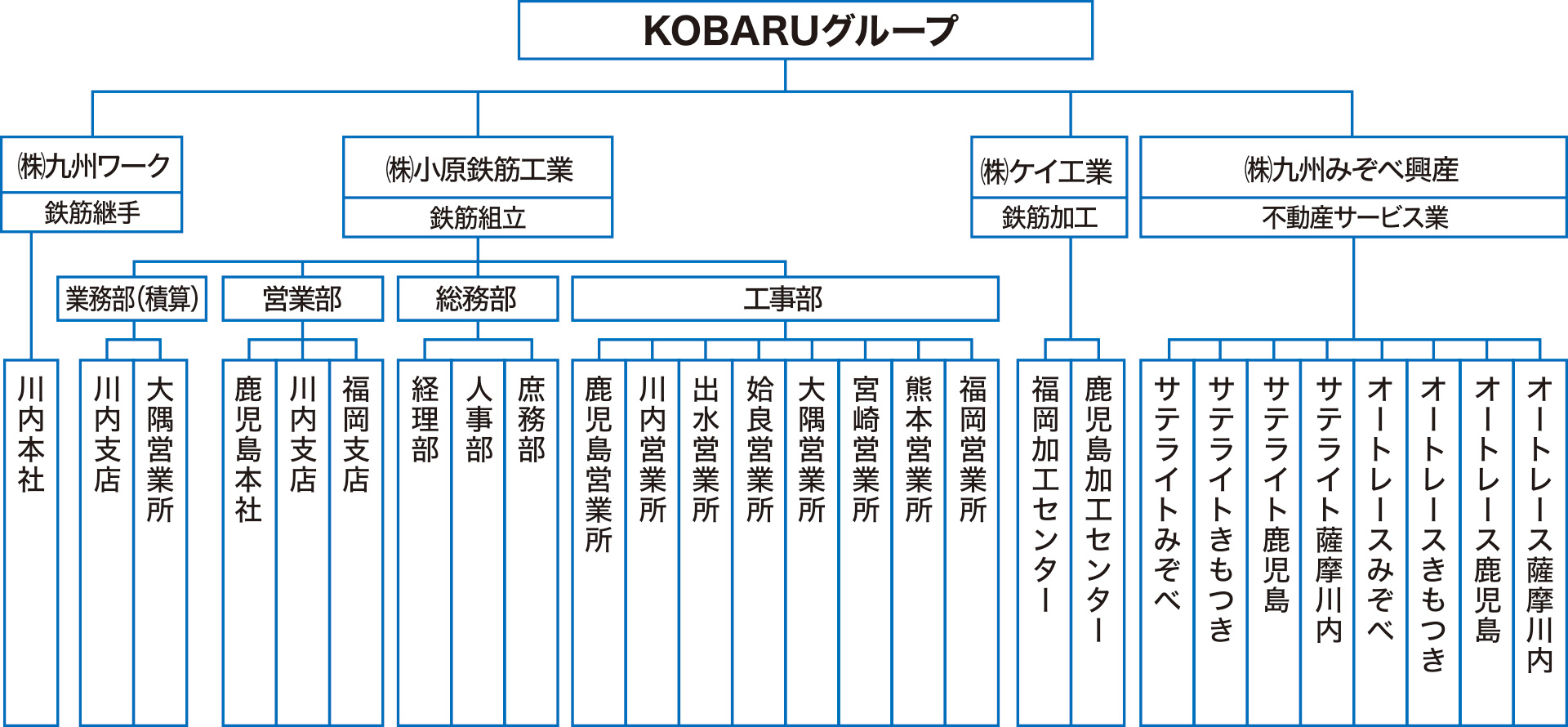 (代表取締役 小原良弘)と組織変更 - 昭和50年06月業務拡大の為、鹿児島県川内市に鉄筋加工場を新設
